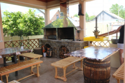| К Вашим услугам (дополнительно) | - трансфер (встреча из Геленджика и Новороссийска от 6 дней - бесплатно) - трансфер к морю (бесплатно) - гладильная + утюг - стиральная машинка (200 руб./стирка) - Wi-fF интернет - организация экскурсий (платно) - летняя беседка - зелёный двор - детская площадка - мангал + барбекю во дворе - бассейн |
