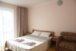 | Примечание | Комфортабельный автобус доставит Вас до моря и обратно (согласно расписанию) БЕСПЛАТНО!!! Дети без предоставления места до 5 лет - 150 руб./сутки. Дополнительные места евро-раскладушка - 250 руб./сутки, детская кроватка - 250 руб./сутки, кресло-кровать - 300 руб./сутки. При заказе номера от 6 дней организация трансфера по приезду в аэропорт Геленджика и ж/д вокзал Новороссийска - бесплатно. |