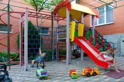 - третья зона предназначена для развлечения Ваших детей. В тени виноградной беседки их ждет детский городок с горкой, спортивной стенкой, рукоходом, спиралью, канатом и игрушками.