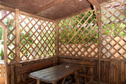 - в мангальной зоне Вы можете приятно провести время в закрытой деревянной беседке, уютно устроившись за столом возле мангала.