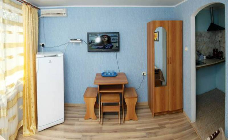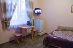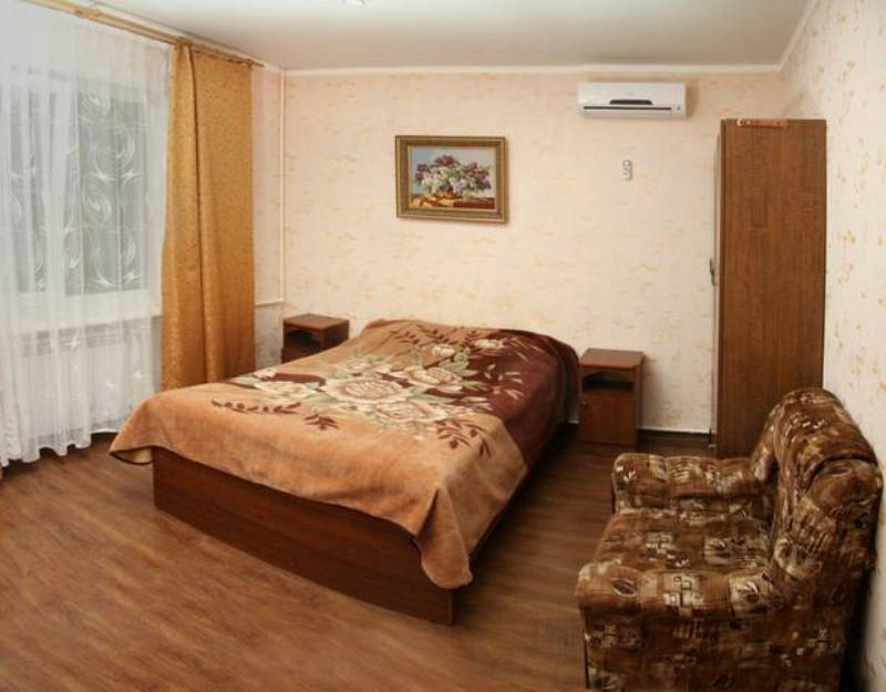 Гостиница наша небольшая. Всего 10 номеров расположенных в трех отдельно стоящих зданиях. Все номера класса "стандарт". В каждом номере душ, туалет, холодильник, тв, спутниковое телевидение триколор, сплит-система, доступ в интернет Wi-Fi. Ко всем номерам есть балконы либо персональные, либо большие общего пользования на этаже. Для вашего питания вам будет предоставлена удобная кухня общего пользования, с кухонным гарнитуром, обеденными столами, газовой плитой, СВЧ печь и полным комплектом посуды.Также есть семейные номера с персональной кухней в номере.