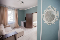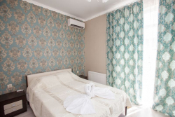| Мебель: | двуспальная кровать, диван-кровать, кресло-кровать, шкаф, стулья, прикроватные тумбочки, вешалка, зеркало |