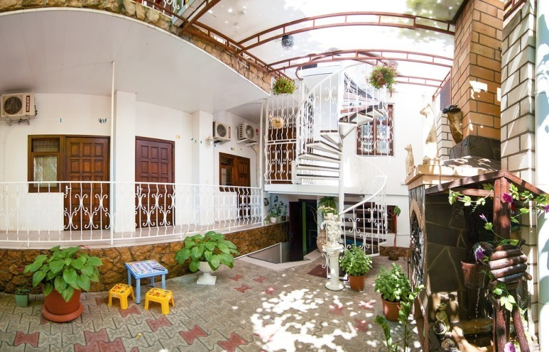 Уютный двор, увитый виноградом, с диваном-качелей и камином, на котором Вы можете приготовить шашлык, располагает к чудесному, незабываемому отдыху.