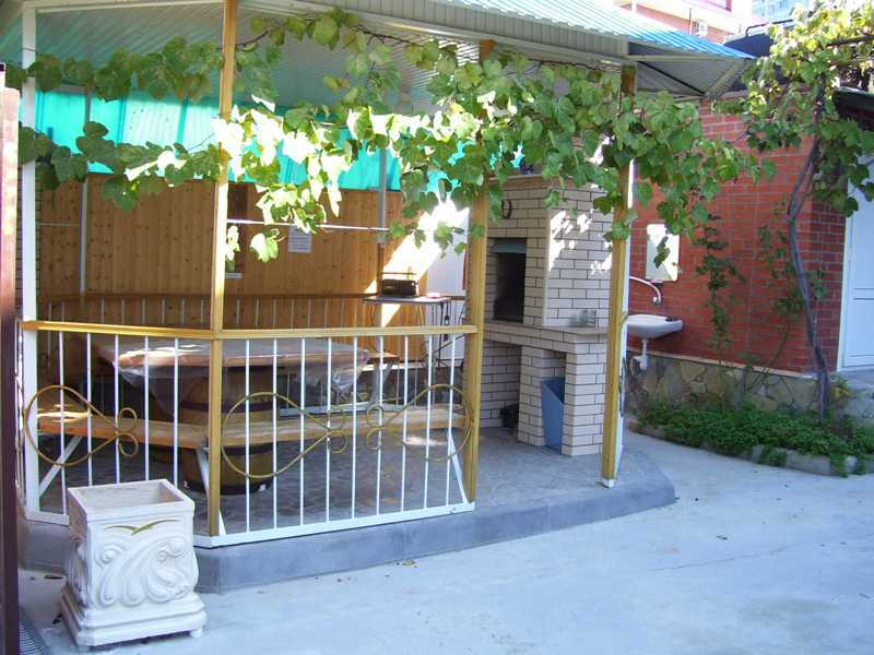 К услугам гостей общая летняя кухня со всем необходимым для самостоятельного приготовления пищи, просторный навес со столиками, фонтан, отдельная беседка с мангалом и большим столом для посиделок в хорошей компании.