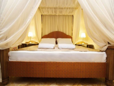 | Мебель: | двуспальная кровать с балдахином, диван-кровать, шкаф, стол, прикроватные тумбочки, вешалка, зеркало |