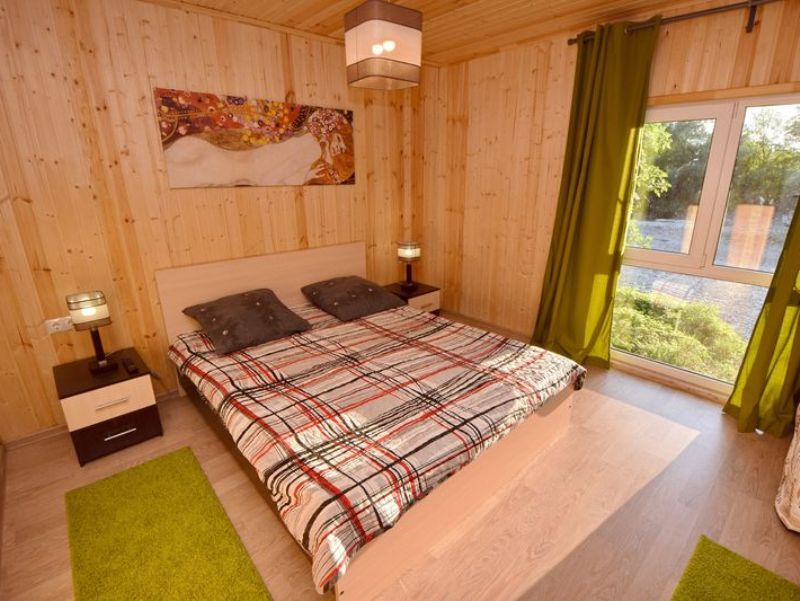 | Мебель: | 4 односпальные и двуспальная кровати, диван-кровать, 4 шкафа, стол, прикроватные тумбочки, стулья, 2 комода, вешалка, зеркало, кухонный гарнитур, обеденная зона |