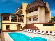 | К Вашим услугам (дополнительно) | - трансфер (платно) - стиральная машинка - Wi-Fi интернет - экскурсии - бассейн с подогревом (2 зоны: детская + взрослая) - мангал во дворе - барбекю - гладильная + утюг - СВЧ - спутниковое ТВ - детский уголок - территория под видеонаблюдением |