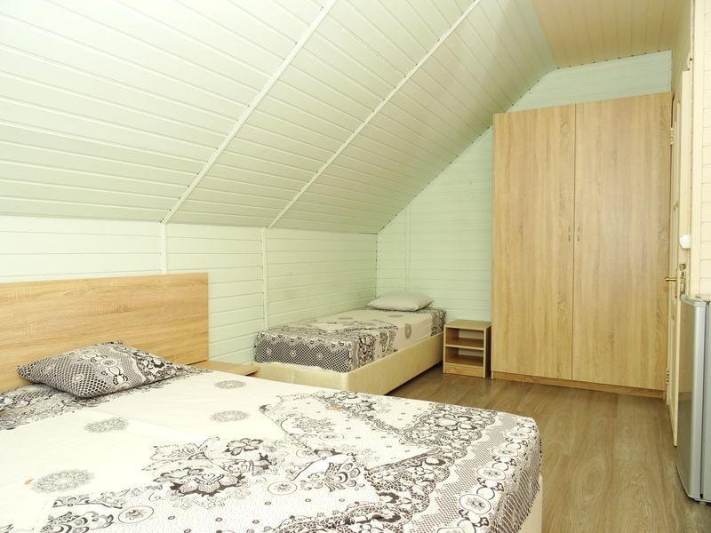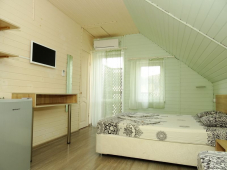 | Мебель: | односпальные и двуспальная кровати, диван-кровать, кресло-кровать, шкаф, прикроватные тумбочки, вешалка, зеркало |