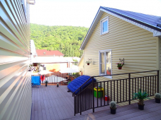 | К Вашим услугам (дополнительно) | - трансфер (платно) - стиральная машина - Wi-Fi интернет - экскурсии - мангал - барбекю - детская площадка - гладильная + утюг (в каждом номере) - СВЧ - спутниковое ТВ - индивидуальная зона отдыха у каждого номера |