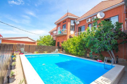 | К Вашим услугам (дополнительно) | - трансфер - Wi-Fi интернет - бассейн - мангал - барбекю - детская площадка - зеленый двор - беседка - гладильная + утюг - СВЧ - спутниковое ТВ - фильтр очистки воды |