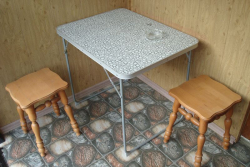 | Мебель: | односпальная и двуспальная кровати, стулья, шкаф, прикроватные тумбочки, стол, вешалка, зеркало, кухонный гарнитур, обеденная зона |
