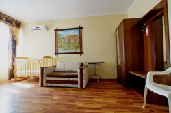 | Мебель: | односпальные и двуспальная кровати, кресло-кровать, диван-кровать, шкаф, прикроватные тумбочки, журнальный столик |