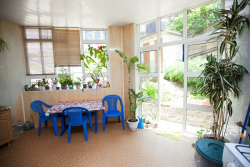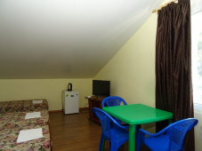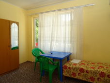 Дизайн каждого номера выполнен в своей цветовой гамме: розовый, голубой, розовый, зелёный и др. Так же имеется уютный холл оснащенный телевизором и уютным диваном,где можно провести время у телевизора. К услугам гостей большой уютный двор со столиками, мангальной зоной, бесплатный Wi-Fi в местах общего пользования.