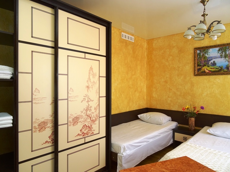 | Мебель: | односпальная кровать, стулья, шкаф, прикроватные тумбочки, стол, вешалка, зеркало |