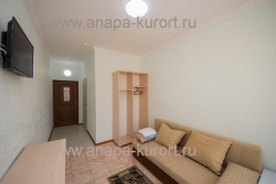| Мебель: | односпальные или двуспальная кровати, кресло-кровать, шкаф, стулья, прикроватные тумбочки, стол, вешалка, зеркало |