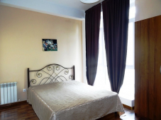 | Мебель: | двуспальная кровать, диван-кровать, стулья, шкаф, прикроватные тумбочки, вешалка, зеркало, туалетный столик |