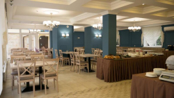 | Питание | - свое кафе (завтрак включен) - питание по системе шведский стол (обед: взрослый - 400 руб., ребенок - 200 руб., ужин: взрослый - 600 руб., ребенок - 300 руб). - питание на заказ |