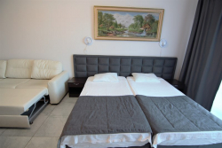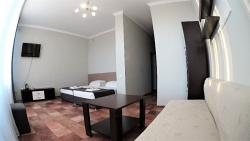 | Удобства: | холодильник, кондиционер, телевизор, спутниковое ТВ, эл. чайник, интернет, фен, балкон, бра, комплект индивидуальной косметики, тапочки |