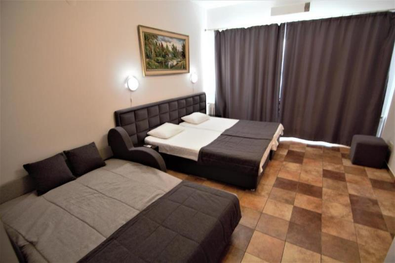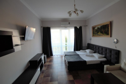 | Удобства: | холодильник, кондиционер, телевизор, спутниковое ТВ, СВЧ, эл. чайник, посуда, интернет, фен, терраса, комплект индивидуальной косметики, тапочки |