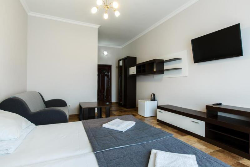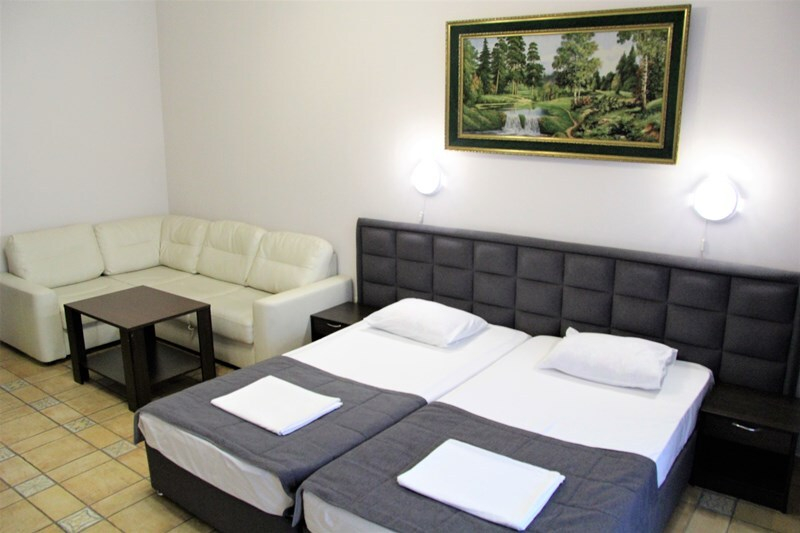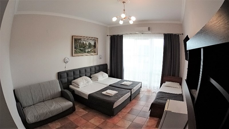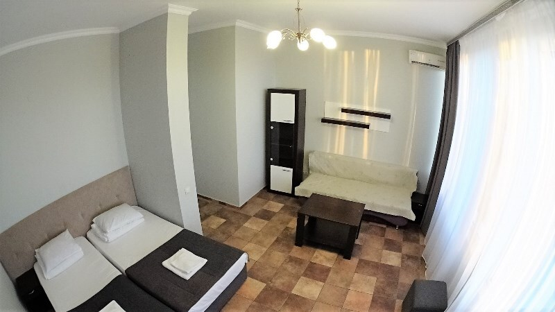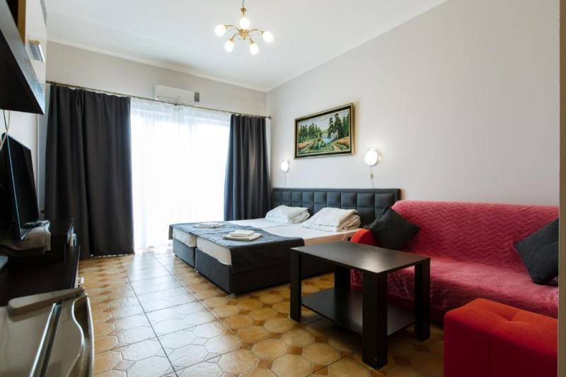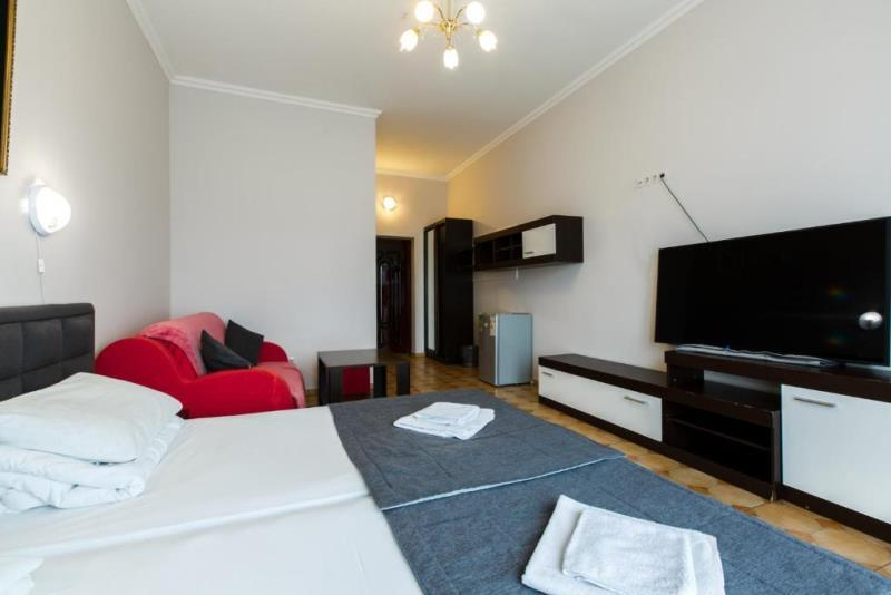 | Удобства: | холодильник, кондиционер, телевизор, спутниковое ТВ, эл. чайник, интернет, фен, балкон, комплект индивидуальной косметики, тапочки |