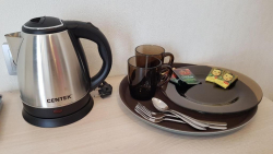 В числе удобств всех номеров: кондиционер, телевизор (плазма) с кабельными каналами, холодильник, чайник, душ, фен и шкаф.
