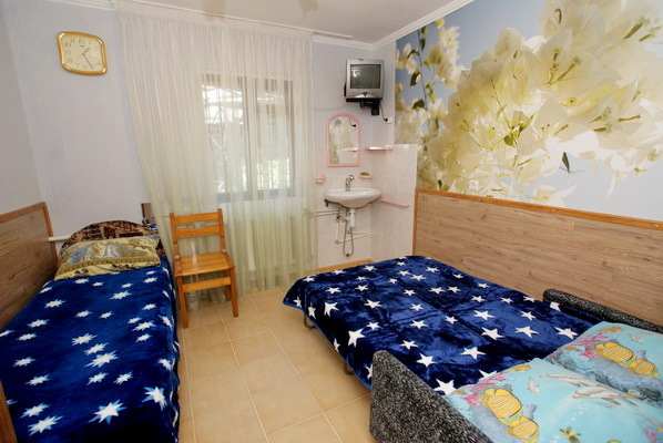 Гостевой домик "Мини Киви" находится в хорошем тихом районе п. Лазаревское - не слышно ни железной дороги, ни федеральной трассы, ни уличного шума. До моря всего 3 минуты неспешной ходьбы по прямой дороге, не пересекая ж/д пути (они проходят над дорогой на море) или через подземный переход. До центрального рынка и парка культуры и отдыха всего 15 минут ходьбы. Домик располагается рядом с развлекательным центром "Дельфин", аквапарком "Морская звезда", дельфинарием, пингвинарием, океанариумом и детским "Луна - парком". В радиусе 100 метров находятся 5 кафе-столовых, где Вы можете вкусно и недорого поесть. Неподалеку есть платная охраняемая автостоянка. У нас Вы можете разместиться как в недорогих номерах с удобствами на этаже (на три номера), так и в номерах повышенной комфортности. На территории гостевого домика предоставляется бесплатный доступ к интернету Wi-Fi.