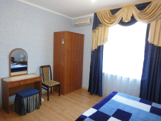| Мебель: | двуспальная кровать, кресло-кровать, шкаф, стулья, прикроватные тумбочки, журнальный столик, туалетный столик, вешалка, зеркало, обувница |