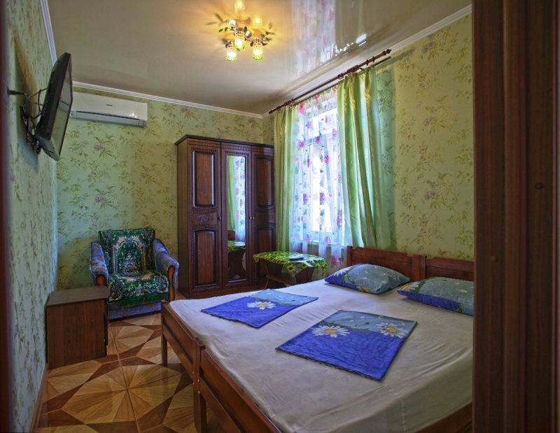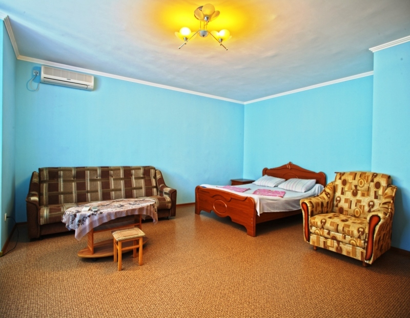 | Мебель: | односпальные или двуспальная кровати, диван-кровать, кресло-кровать, шкаф, стулья, прикроватные тумбочки, журнальный столик, зеркало |