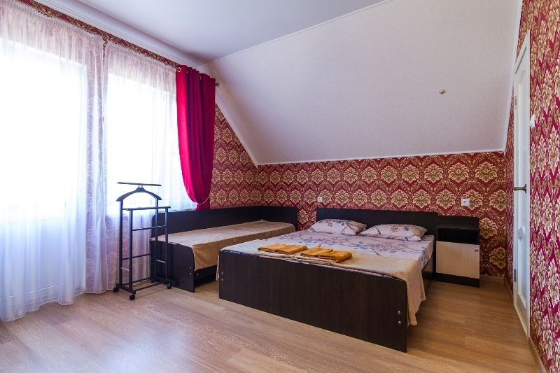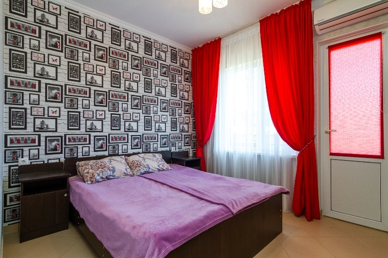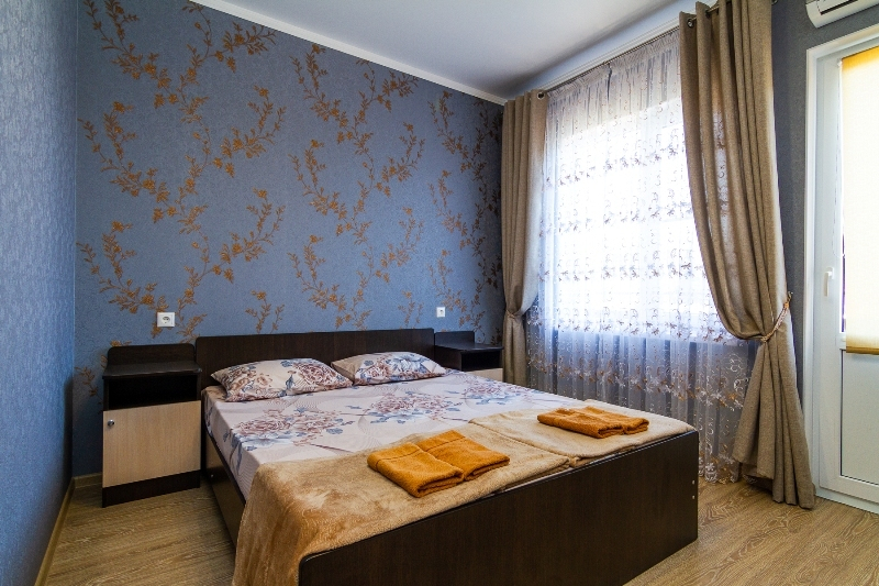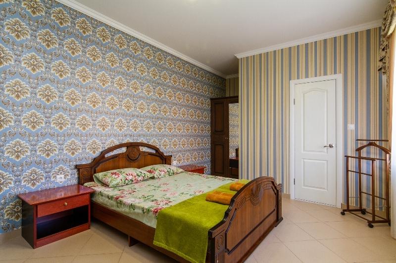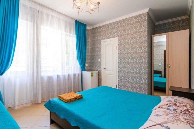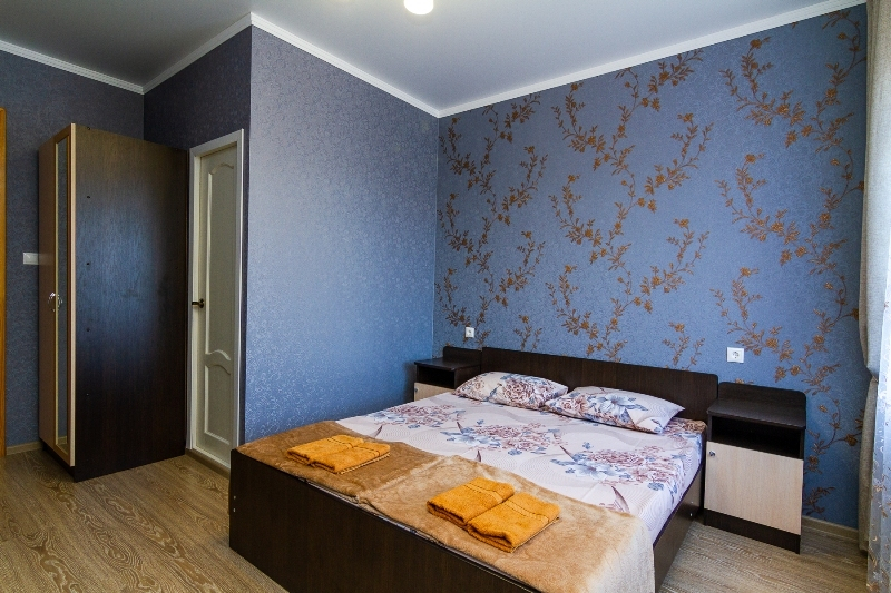| Мебель: | двуспальная кровать, шкаф, прикроватные тумбочки, вешалка |