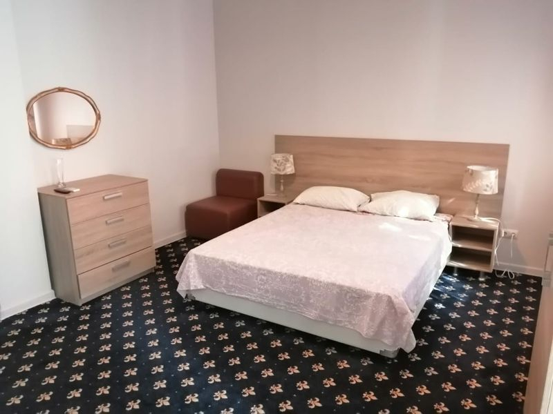 | Мебель: | двуспальная кровать, диван-кровать, кресло-кровать, шкаф, стулья, кресла, прикроватные тумбочки, журнальный столик, стол, вешалка, зеркало |
