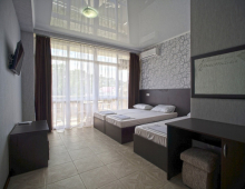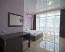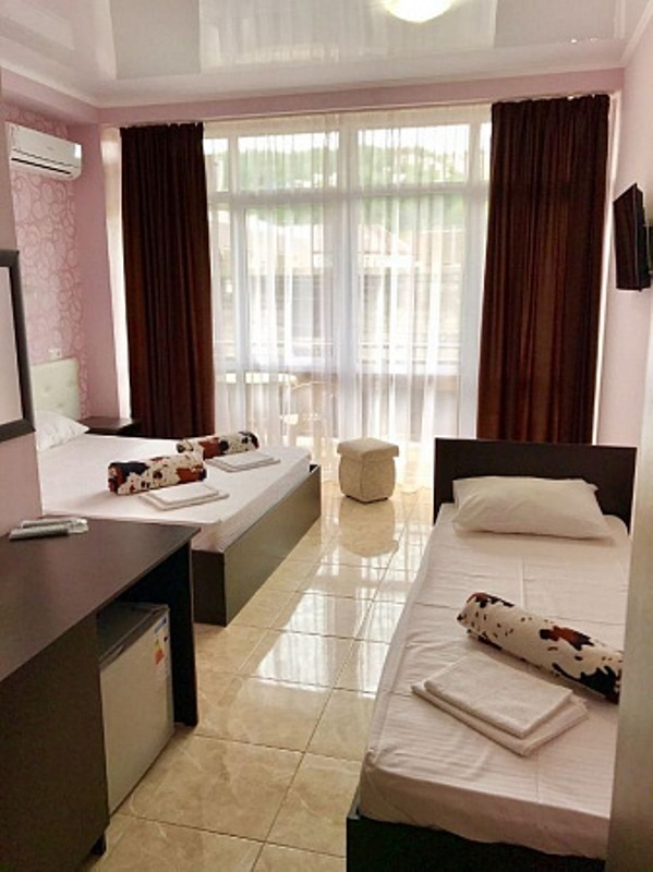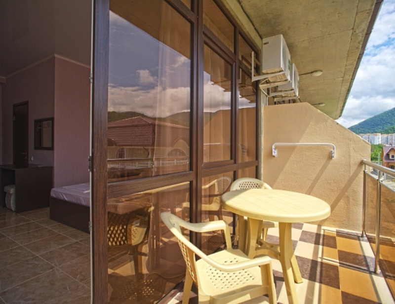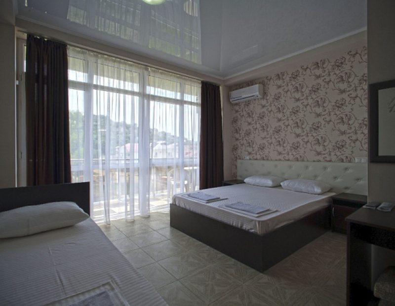 Просторные номера с панорамными окнами, индивидуальным дизайном и комфортабельной мебелью. В каждом номере сан/узел, телевизор, набор посуды, набор полотенец, постельное бельё, холодильник, сплит-система, балкон и столы со стульями, чтобы каждый отдыхающей чувствовал себя с комфортом. Из окон гостевого дома открывается красивый вид на горы, вечно зеленную растительность и смешанные леса колхидского типа.