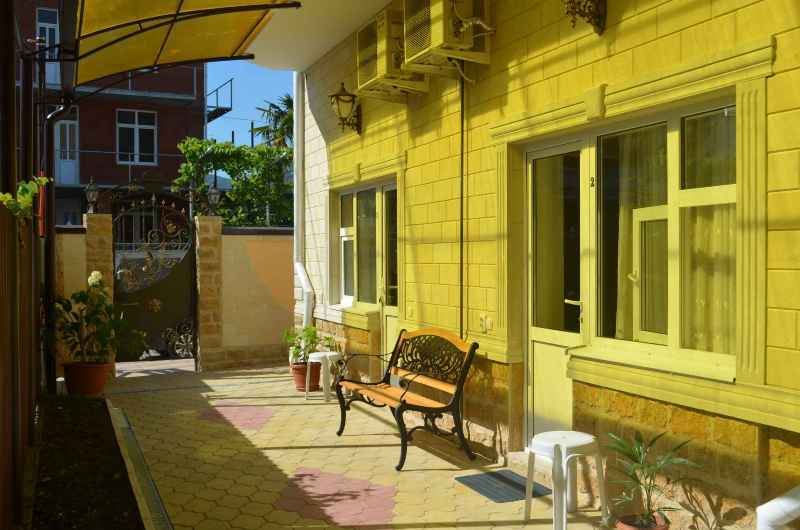 В частном доме созданы все условия для наиболее комфортного отдыха гостей. Внешний стиль частного дома, выдержан в красках туманного заката солнца, делает его солнечным, ярким и в то же время сохраняет теплоту и уют. Во внутреннем дворике установлен не большой фонтан в стиле каменного завала, забор так же подчёркивает стилистику фонтана с тонким уклоном в сторону древнего Египта, все это позволяет гостям наслаждаться спокойным и умиротворенным отдыхом. Частный дом состоит из двух зданий, обеспеченных бесплатным доступом в интернет Wi-Fi.: здание №1 - 4х-этажное, и №2 - 3х-этажное кирпичное.