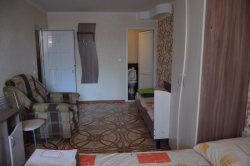 Комната имеет качественную, новую мебель и прекрасную отделку, что делает проживание комфортным и приятным. Влажная уборка и замена белья в комнате проводиться 1 раз в 4-5 дней, а также уборка может проводится по заявке гостей. Комната оснащена: санузлом и душевой с горячей и холодной водой, феном, средствами гигиены, полотенцами, телевизором с плоским экраном, холодильником, сплит – системой, сейфом, бесплатным доступом в интернет Wi-Fi, бокалами, посудой для овощей и фруктов. Имеется индивидуальный балкон, летняя мебель на балконе. Площадь комнаты от 16-18 кв.м. И балкон 2-4 кв.м.