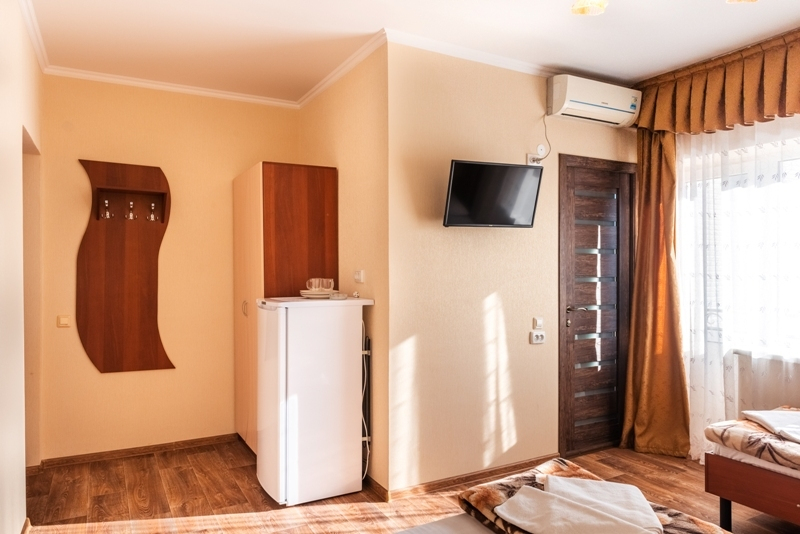 В 2х-3х-местных комнатах имеется возможность устанавливать кровати как совместно, так и отдельно. В комнатах имеется: санузел и душевая с горячей и холодной водой, фен, средства гигиены, полотенца, телевизор, холодильник, сплит-система, сейф, бесплатный доступ в интернет Wi-Fi, бокалы, посуда для овощей и фруктов, индивидуальный балкон, летняя мебель на балконе, дополнительное место.