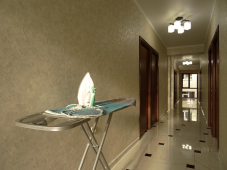 | Мебель: | односпальные или двуспальная кровати, кресло-кровать, шкаф, стулья, прикроватные тумбочки, журнальный столик, стол, вешалка, зеркало |