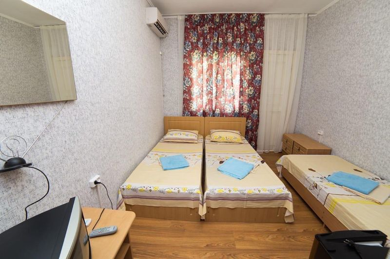 Категории номеров: 2х-, 3х- и 4х-местные номера "Стандарт". В номерах: душ, туалет, холодильник, телевизор, кондиционер, кровати, тумбочки, шкаф, стол, стулья и балкон.