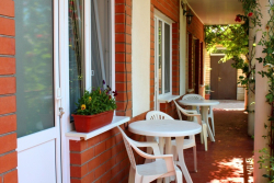 | Удобства: | кондиционер или вентилятор, телевизор, холодильник, большая общая терраса со столиками |