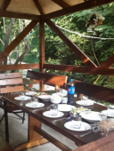 | К Вашим услугам (дополнительно) | - трансфер - стиральная машина (платно) - Wi-Fi интернет - экскурсии - бассейн - мангал - детская площадка - беседка - зеленый двор - гладильная + утюг - спутниковое ТВ |