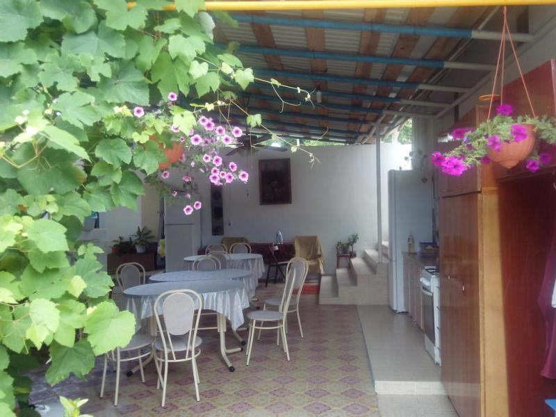 | К Вашим услугам (дополнительно) | - трансфер (Ж/Д встреча и проводы бесплатно, Аэропорт платно - 1500 руб., до моря и обратно бесплатно) - стиральная машина (платно - 100 руб.) - Wi-Fi интернет - экскурсии (платно) - мангал - детская площадка - зеленый двор - беседка - гладильная + утюг - СВЧ - цифровое ТВ - пруд с рыбками (декоративный) |