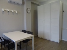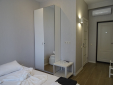 | Мебель: | односпальные или двуспальная кровати, шкаф, пуфики, журнальный столик, вешалка, зеркало |