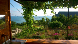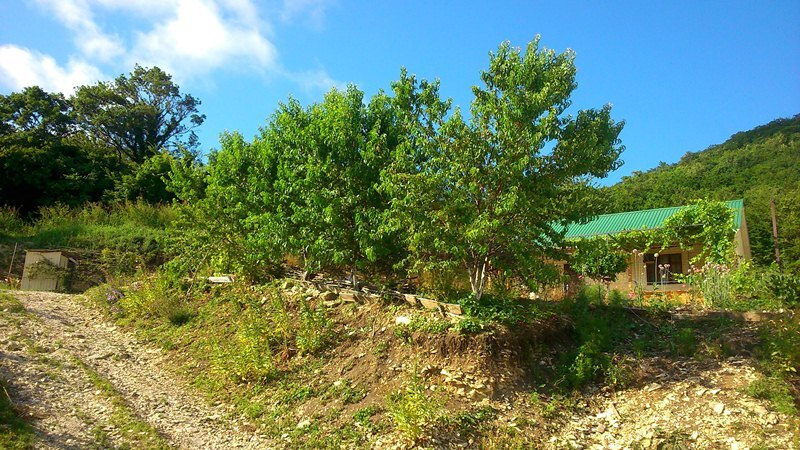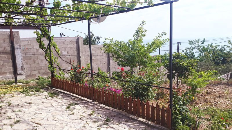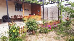 Сдаем дом под ключ на 7 мест с удобствами (возможны дополнительные места, идеальный вариант для семейного отдыха), 54 кв.м. 2 комнаты + 1 комната проходная, кухня в доме и на улице, душ с туалетом также в доме и на улице, место отдыха на открытой веранде с мягкими креслами, на участке растут персиковые деревья, фейхоа и редкое клубничное дерево, еще тенёк создает виноград вдоль открытой веранды.