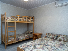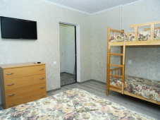 | Мебель: | двухъярусная и двуспальная кровати, комод, прикроватные тумбочки, журнальный столик, зеркало, стол, стулья, кухонный гарнитур |