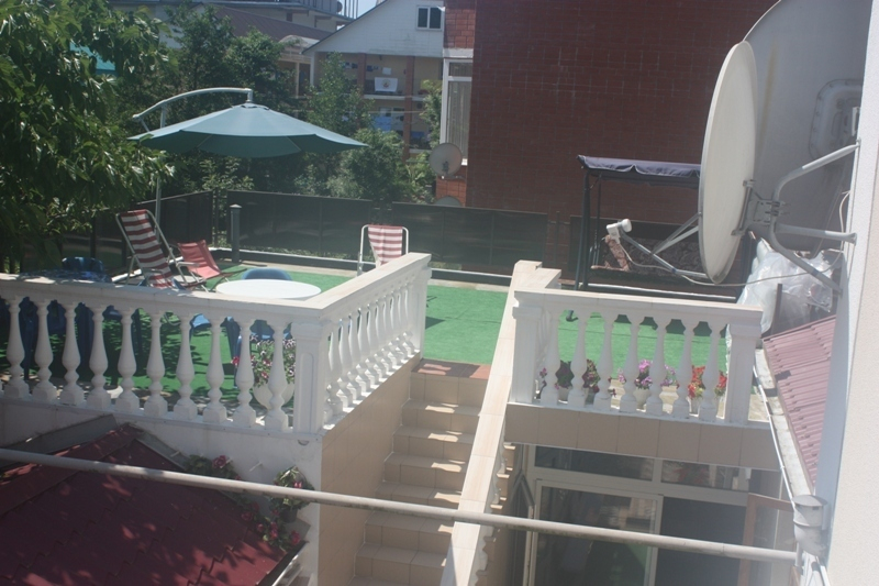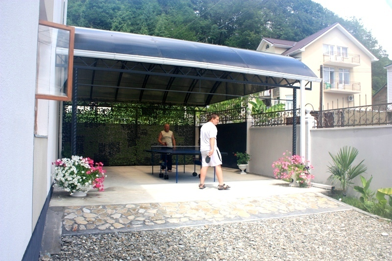 На территории гостевого дома, закрытой и охраняемой, есть все для полноценного семейного и индивидуального отдыха. Стоянка на 6 автомашин, детский бассейн, теневые навесы, просторная терраса для приема пищи, солярий с живописным видом на горы, барбекю для приготовления шашлыка, овощей и т.д., кухня для самостоятельного приготовления пищи. Созданы хорошие условия для игры в настольный теннис. Организован детский уголок с играми, книгами, красками, конструкторами и т.д., здесь же установлен видео-проектор для трансляции детских программ на большом экране и свежем воздухе. Это же оборудование используется для подвижных электронных игр и для просмотра вечерних программ для взрослых, футбольные матчи и т.д. Имеется доступ в интернет по беспроводной сети Wi-Fi.