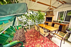 | К Вашим услугам (дополнительно) | - трансфер (платно) - установлен видео проектор для трансляции программ на большом экране и свежем воздухе - созданы комфортные условия для игры в настольный теннис - детский уголок с настольными и электронными играми - просторная терраса для приема пищи - электрочайник (на кухне) - организация экскурсий - стиральная машинка - гладильная+утюг - посуда (на кухне) - 2 газовые плиты - летние беседки - Wi-Fi интернет - СВЧ (на кухне) - заказ билетов - зеленый двор - солярий - бассейн - барбекю - детская площадка |