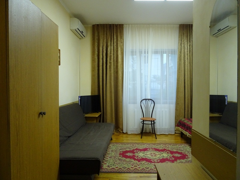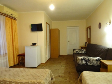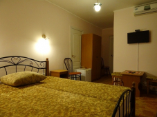 Весь номерной фонд, представлен светлыми и просторными 2х- ,3х- и 4х-местными номерами (16–25 кв.м), имеющими выход на террасу–балкон с сушкой и уголком отдыха. Во всех номерах индивидуальные сан. узлы (раковина, унитаз, душ). В каждом номере установлены телевизор, холодильник, сплит-система. В холле каждого этажа стоят холодильники, на первом этаже гладильная доска и утюг. Постоянно имеется горячая и холодная вода. Наличие центральной канализации (что крайне редко на побережье) обеспечивает дополнительный комфорт проживания.