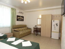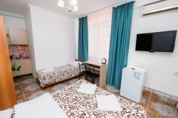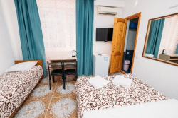 По мнению отдыхающих, уникальным преимуществом расположения нашего пансионата семейного типа "Эрсико" является, то что, несмотря на близость к торговым и развлекательному центрам, он находится в некотором отдалении от шумных улиц и больших скоплений людей. На территории пансионата всегда царит тишина и покой, особенно в вечернее и ночное время, что позволяет нашим гостям полноценно отдохнуть. Уютная атмосфера, индивидуальный подход к каждому отдыхающему. Номера с удобствами (кондиционер, холодильник, телевизор).