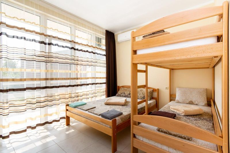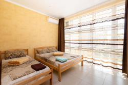 "Татьяна" в этом году работает второй год, а номера по-прежнему находятся в идеальном состоянии (спасибо огромное нашим прекрасным отдыхающим летнего 2019 сезона, которые поверили фотографиям на сайте, рискнули и приехали, а потом были в восторге от качества жилья и обслуживания (смотрите отзывы) передаём Вам привет, ну и конечно же скидки на сезон 2020, продолжим, никаких вылезающих пружинок из матраса, или того хуже, тонюсенького поролона. Светлый и просторный номер с панорамным остеклением точно придётся по душе, ведь в пасмурную погоду тут будет светло, а в знойную жару вас спасёт мощный кондиционер и шторы с современной технологией "блэкаут". В вашем распоряжении будут находиться холодильник, телевизор с цифровым вещанием, Wi-Fi. В номере запрещается курить! На озеленённой территории дома имеется уютная летняя кухня, мангал. В шаговой доступности магазины, развалы с овощами и фруктами, кафе/столовые, детские площадки.