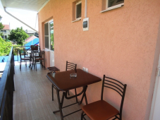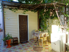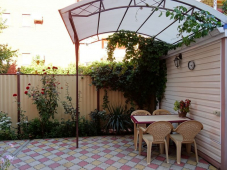 Территория во вкусом озеленена, беседка увитая виноградником, клумбы с экзотическими растениями, есть мангал. Для каждого номера уютный уголок со своим столиком.