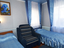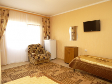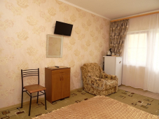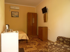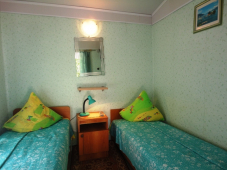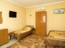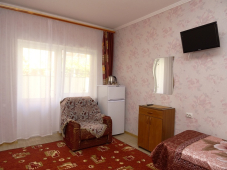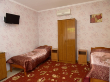 * 2 номера "С удобствами" 3х-4х-местные - душ и туалет на 2 номера, можно использовать как 2-комнатный номер (домик под-ключ), в номерах: кровати с ортопедическими матрацами, шкаф, тумбочка, бра, зеркало, ковровое покрытие, телевизор, кондиционер.