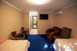 Приехав сюда однажды, вы захотите возвращаться в это место снова и снова, потому что такой отдых с детьми на Черном море оставит самые наилучшие воспоминания. Здесь все ориентировано на клиента. К слугам гостей номера "Семейный Люкс", "Комфорт", "Стандарт". Некоторые из номеров оборудованы мебелью, холодильником и сплит-системой. Выбрав номер с кухней, вы сможете готовить себе сами. Есть также возможность питаться в кафе, в шаговой доступности. К Вашим услугам открытый бассейн (с детской и взрослой секцией) с теплой водой и чистой площадкой для загара. Данная услуга для наших гостей совершенно бесплатна!